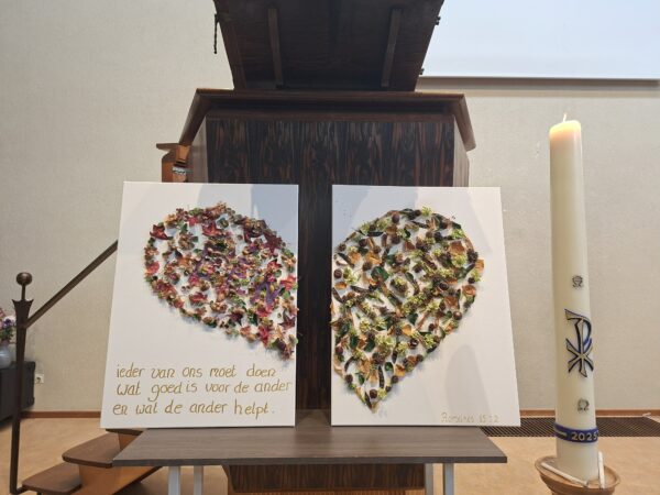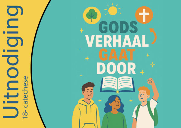 ‘Het thema voor catechisatie 2025-2026 is: Gods verhaal gaat door. Dit jaar willen we samen op zoek gaan naar onze plek in dat verhaal. Wat betekent het om God te